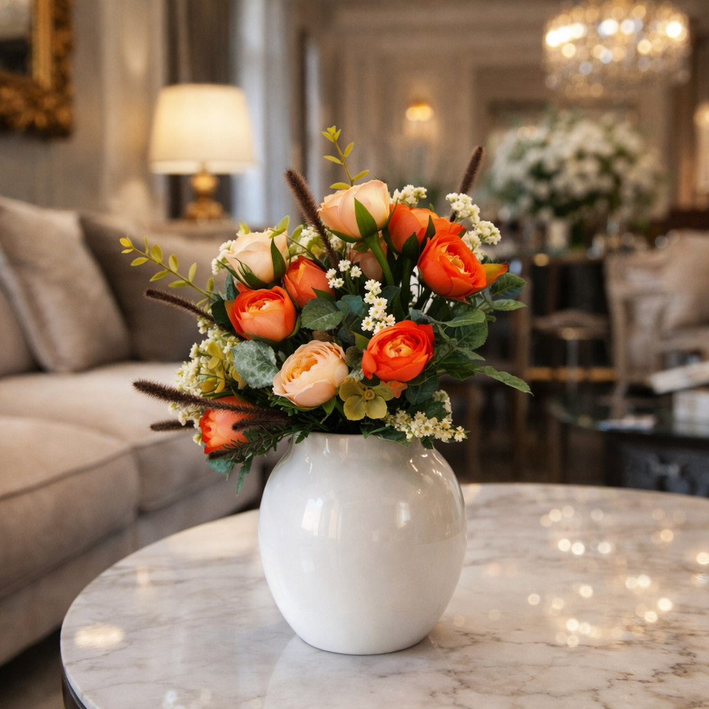 Il mazzo di fiori artificiali decorativi è una soluzione elegante per arricchire ambienti interni con composizioni floreali sempre perfette. Grazie al design realistico e ai colori vivaci, questi fiori artificiali sono ideali per decorare vasi, centrotavola, scaffali o allestimenti per eventi.