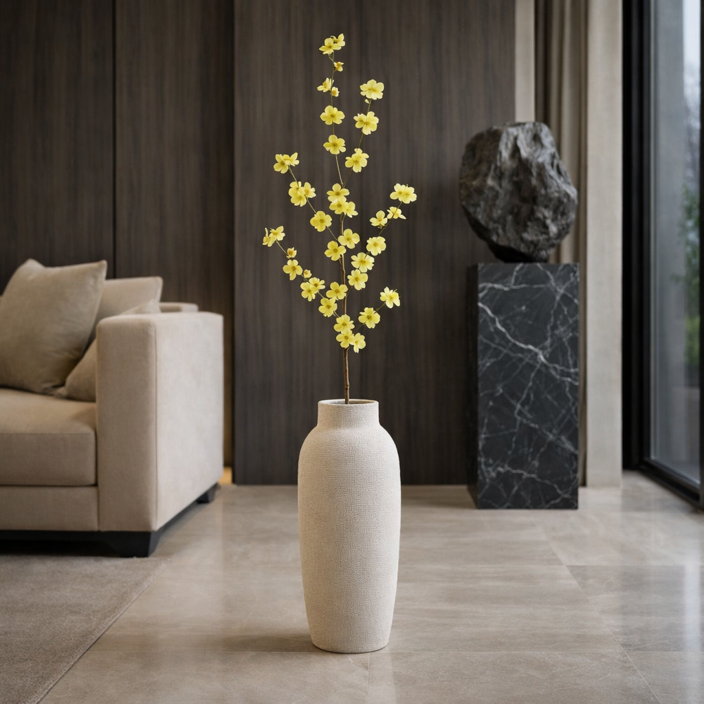 Realizzato con petali realistici e dettagli curati, questo ramo artificiale offre un effetto naturale e sofisticato. Il fusto flessibile consente di modellarlo facilmente per adattarlo a vasi alti o composizioni personalizzate.
