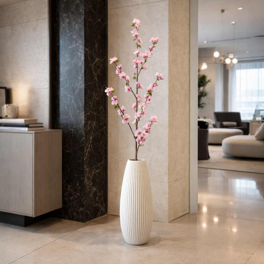 I petali rosa delicati e i dettagli realistici rendono questo ramo perfetto per creare ambienti eleganti e raffinati. Grazie al fusto flessibile, può essere modellato facilmente per adattarsi a vasi alti o composizioni personalizzate.
