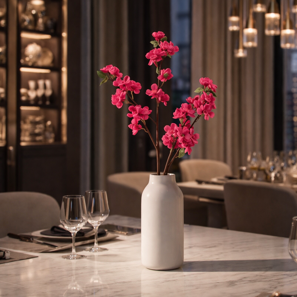 Grazie alla sua struttura slanciata e alla disposizione bilanciata dei fiori, questo ramo artificiale è ideale per vasi da terra, composizioni floreali, allestimenti per eventi, vetrine, negozi, ristoranti e abitazioni. Non richiede manutenzione, acqua o luce, mantenendo nel tempo un aspetto sempre fresco.