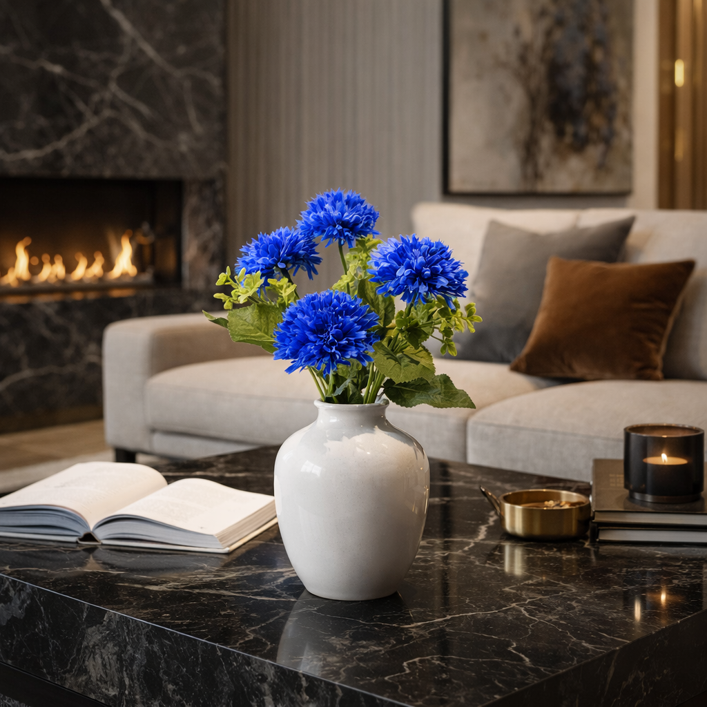 mazzetto fiori artificiali 5 teste crisantemo decorativo blu