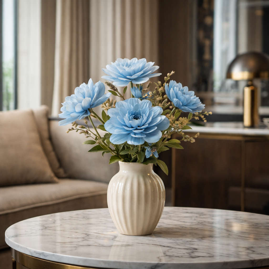 mazzetto fiori artificiali 5 teste celeste dalia decorative