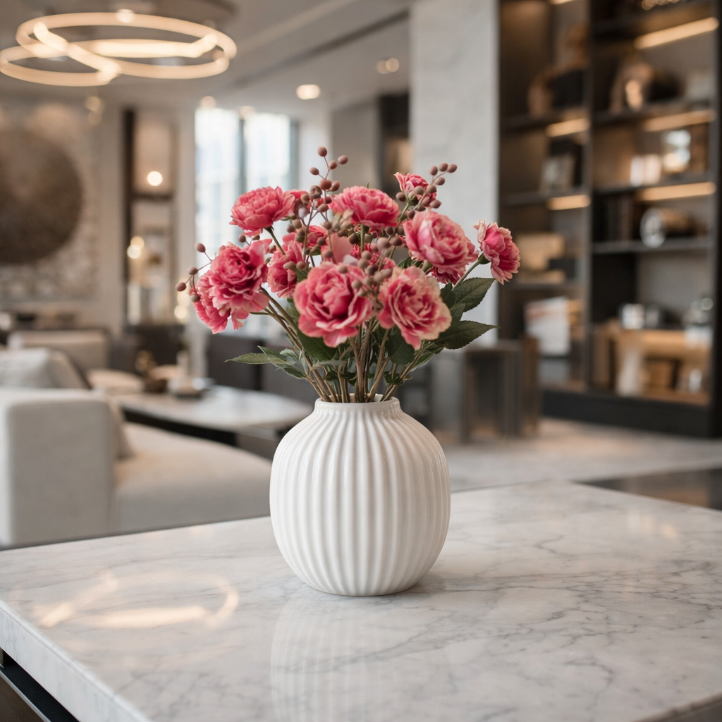 Elegante mazzetto di fiori artificiali 10 teste con dettagli decorativi e bacche ornamentali, ideale per composizioni floreali scenografiche e allestimenti raffinati.