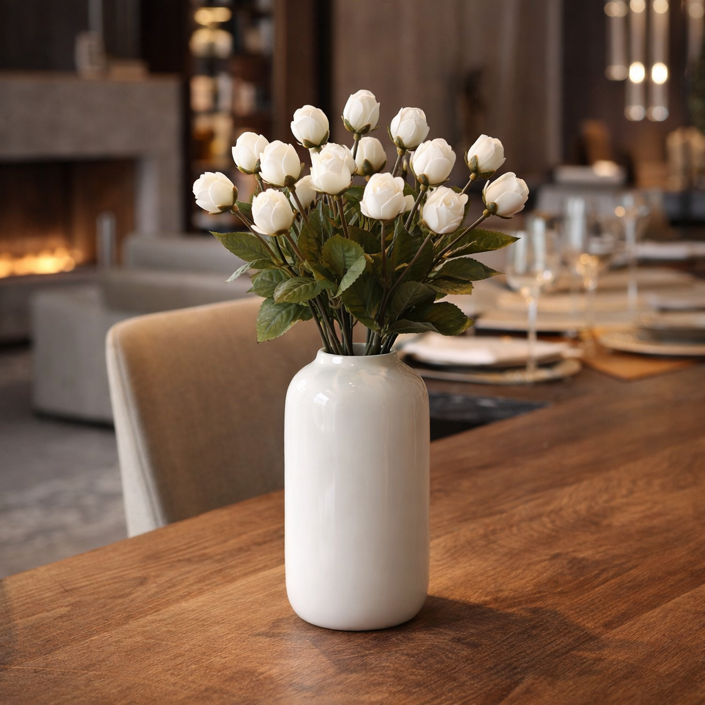 I boccioli chiusi riproducono fedelmente la forma naturale della rosa in fase di fioritura, offrendo un effetto elegante e raffinato. Perfetto per decorazioni durature senza manutenzione.