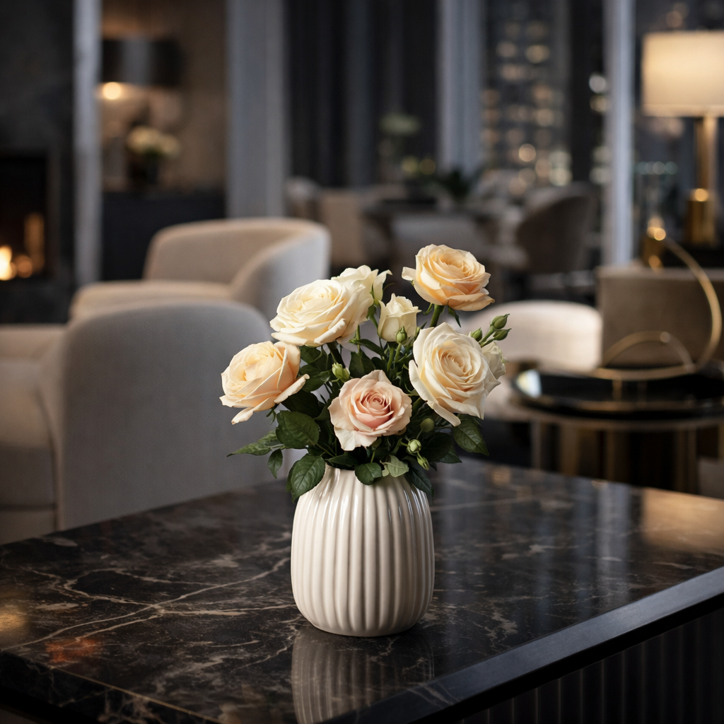 Elegante mazzetto di roselline artificiali composto da 5 teste realistiche, ideale per decorazioni floreali raffinate, composizioni creative e allestimenti per eventi.