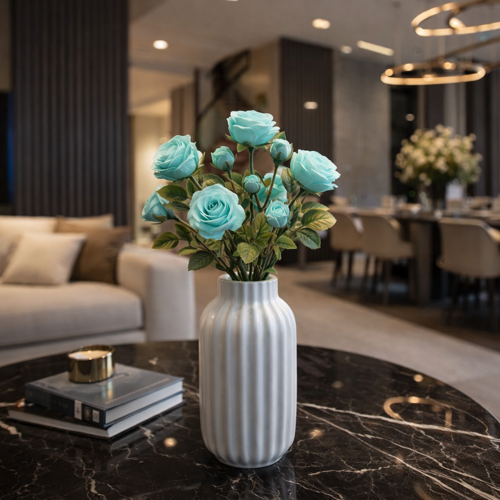 Le roselline presentano petali curati nei dettagli e foglie verdi naturali, offrendo un effetto realistico e decorativo. Perfette per vasi, centrotavola, bomboniere e creazioni fai da te.