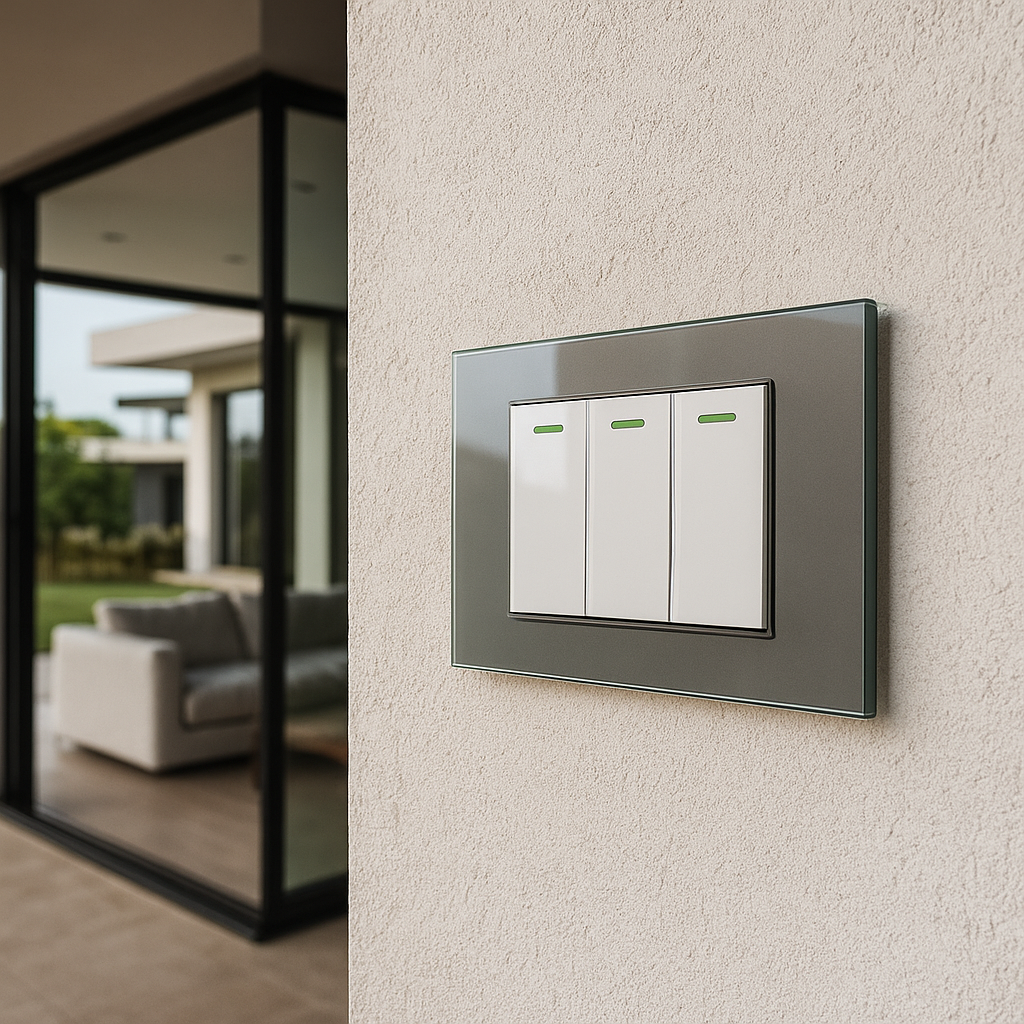 Placca 3 Posti in Vetro Effetto Acciaio – Design “Serie Ginevra”