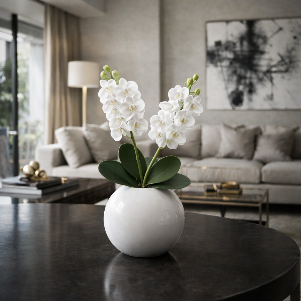 Elegante ramo di orchidea artificiale alto 33 cm, ideale per decorazioni raffinate e composizioni floreali moderne. I fiori presentano petali realistici e dettagli curati che riproducono fedelmente l’effetto naturale dell’orchidea.