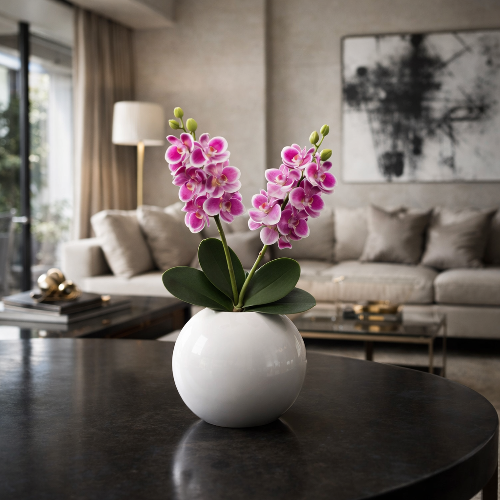 Elegante ramo di orchidea artificiale alto 33 cm, ideale per decorazioni raffinate e composizioni floreali moderne. I fiori presentano petali realistici e dettagli curati che riproducono fedelmente l’effetto naturale dell’orchidea.