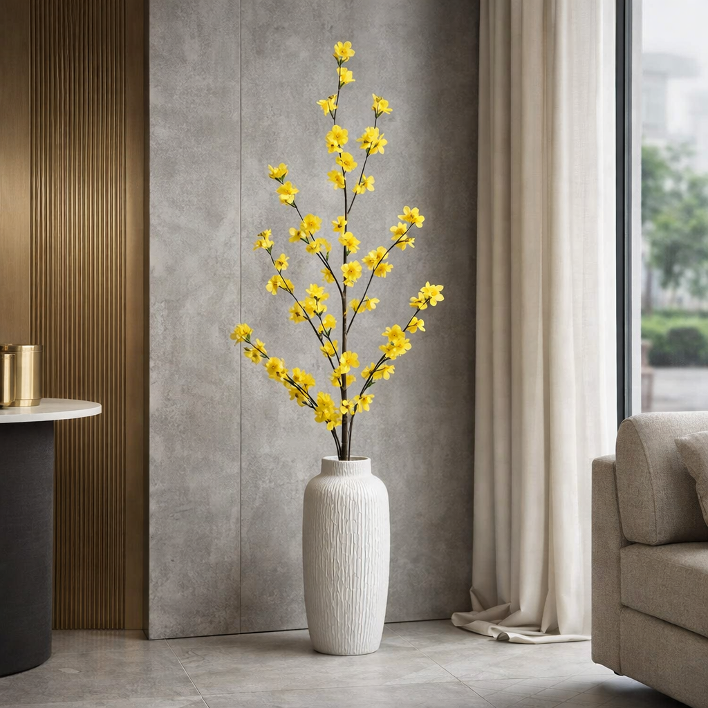 Ramo lungo di fiore di pesco artificiale giallo alto 125 cm, ideale per decorazioni eleganti e composizioni floreali raffinate. Il colore bianco puro dona luminosità e armonia agli ambienti.