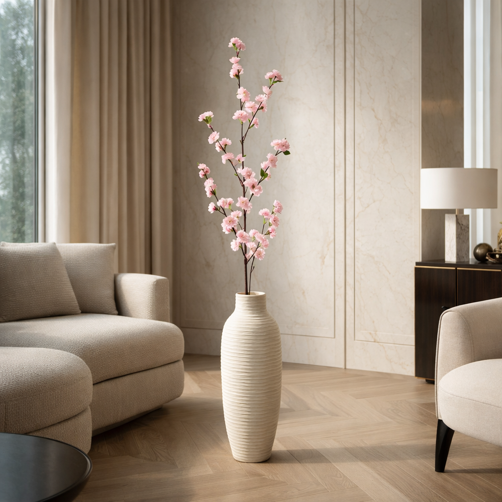 I petali rosa delicati e i dettagli realistici rendono questo ramo perfetto per creare ambienti eleganti e raffinati. Grazie al fusto flessibile, può essere modellato facilmente per adattarsi a vasi alti o composizioni personalizzate.