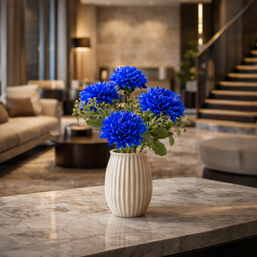 mazzetto fiori artificiali 5 teste crisantemo decorativo blu