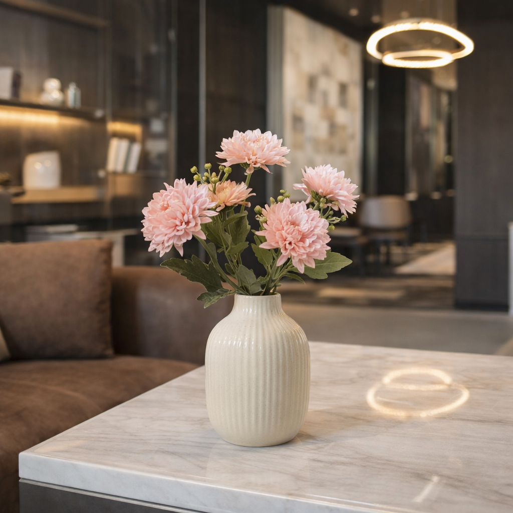 Il mazzetto di crisantemi artificiali mantiene nel tempo forma e colore, non appassisce e non necessita di manutenzione.