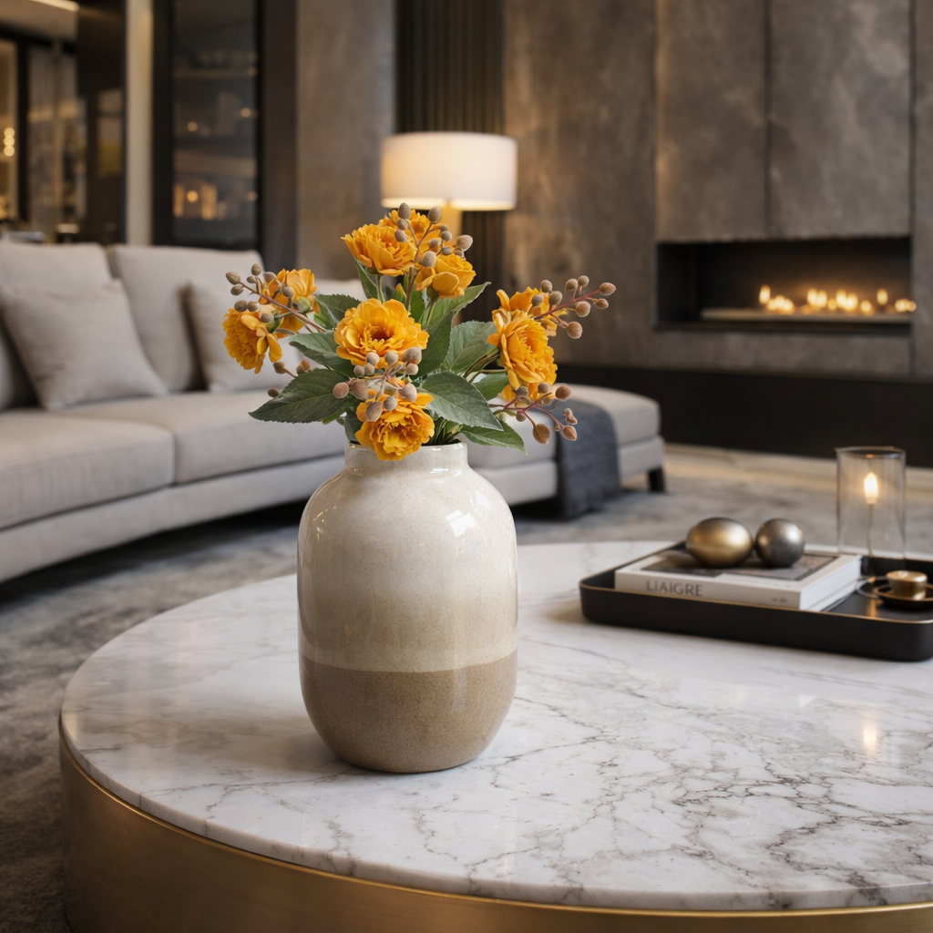mazzetto fiori artificiali 10 teste decorative con bacche giallo ocra