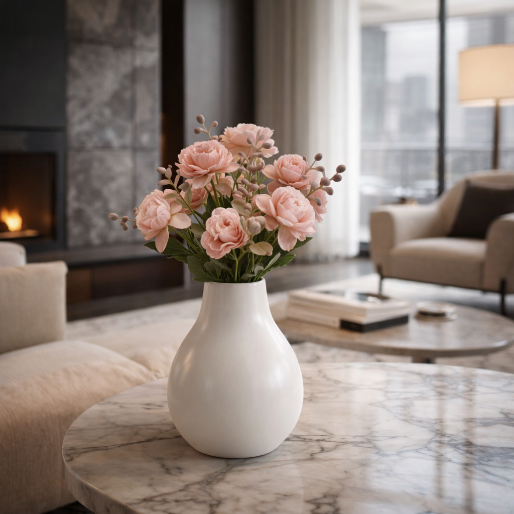 Elegante mazzetto di fiori artificiali 10 teste con dettagli decorativi e bacche ornamentali, ideale per composizioni floreali scenografiche e allestimenti raffinati.