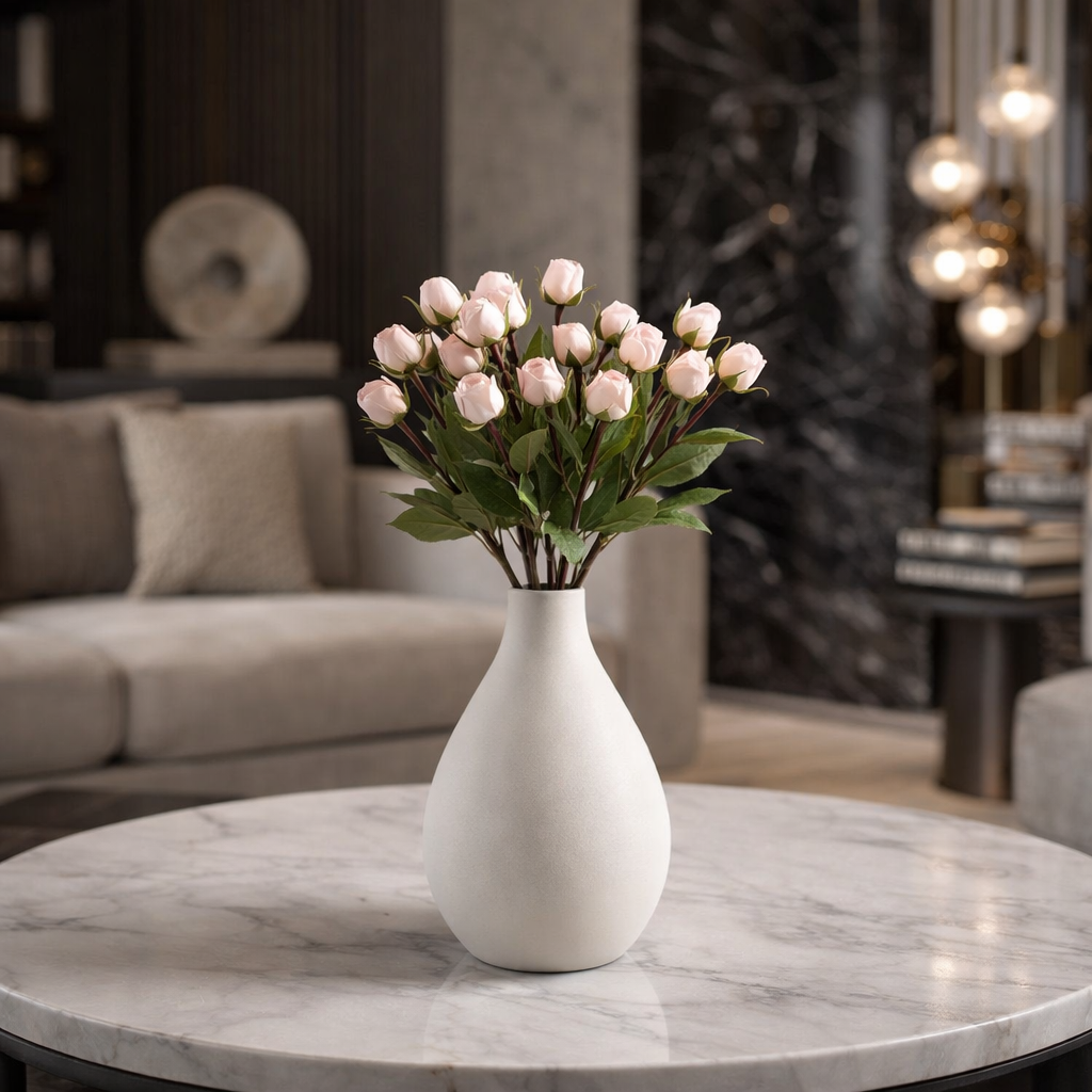 Delicato bocciolo di rosa artificiale piccolo alto 27 cm, composto da 15 teste compatte e realistiche. Ideale per composizioni floreali, bomboniere, allestimenti decorativi e creazioni fai da te.